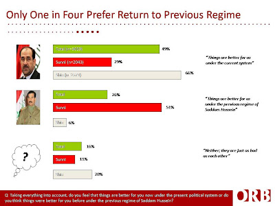 I have been wondering why we haven’t heard more from the Iraqi government . . . or the Iraqi citizens. Perhaps it is because they can’t speak out for fear of reprisals, which may be part of the problem there. It might help significantly if there were some way to obtain an independent, unbiased, and statistically valid poll or vote (that might offer protective anonymity) to let us know exactly what the Iraqi citizens think of the U.S. involvement and how they would like it to proceed in assisting their country. If there are some, please post them.Over the years, I've posted opinion polls showing Iraqis approved of the invasion and continued presence of coalition troops; I've complained that the left isn't listening. They overlook English-language Iraqi news. And anti-war progressives ignore Iraqi bloggers, supporters and opponents, none of which could be pigeon-holed as Bush cheerleaders.